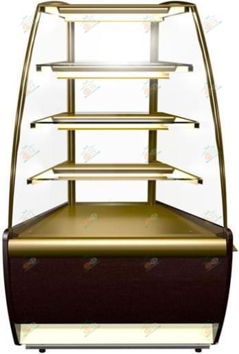 - Витрина имеет светильники над каждой полкой, гнутое фронтальное стекло, три освещаемые фиксированные полки и ночные шторки из оргстекла.