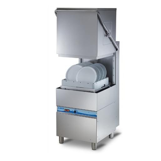 Модель обладает компактными размерами, полностью выполнена из нержавеющей стали и не подвержена коррозии. Один рабочий цикл занимает 1-2 минуты. В стандартную комплектацию входят корзины на 18 и 26 тарелок, 2 держателя для столовых приборов.